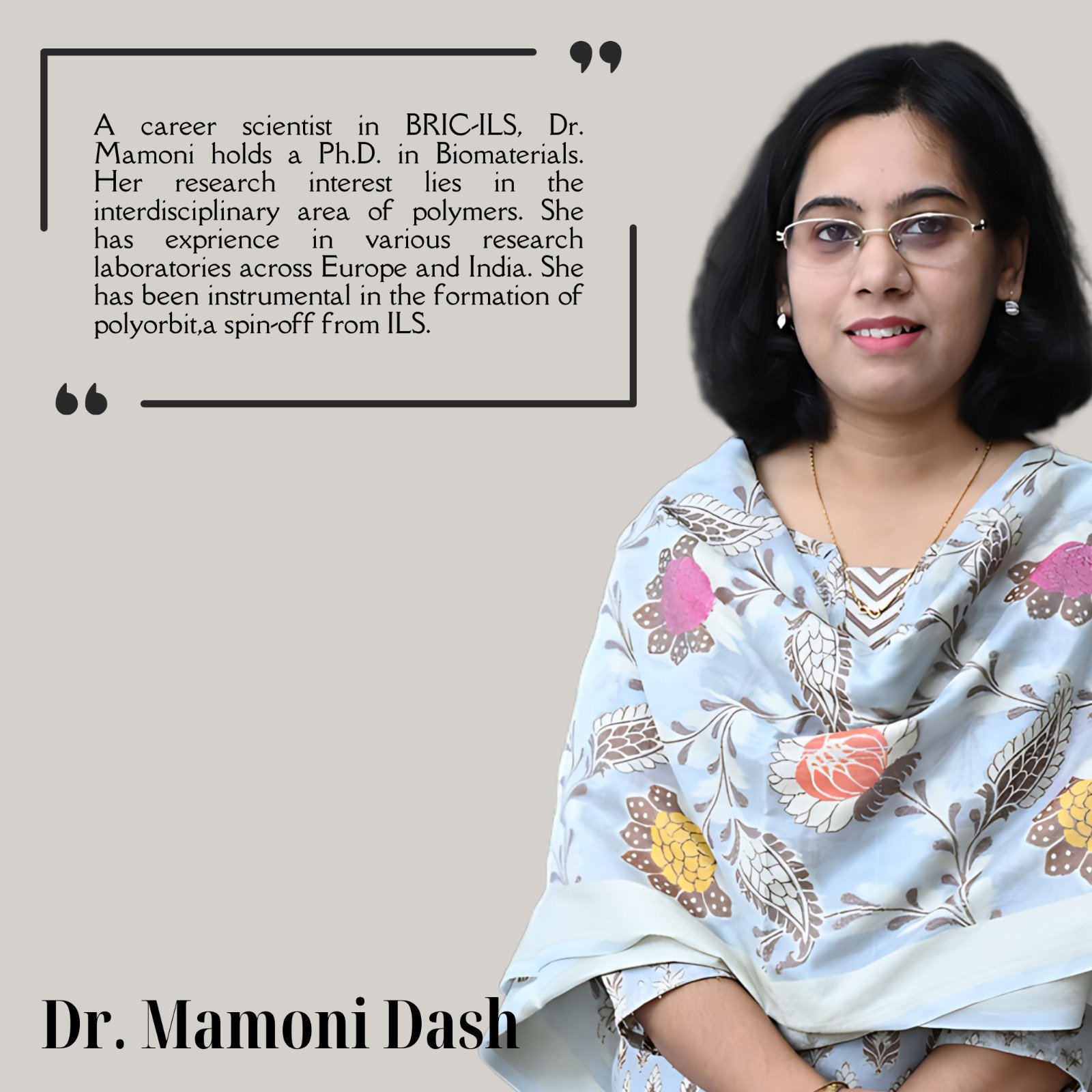 A career scientist in BRIC-ILS, Dr. Mamoni holds a Ph.D. in Biomaterials. Her research interest lies in the interdisciplinary area of polymers with current focus on developing polymers as biomaterials for biotechnological applications. She has experience in various research laboratories across Europe and India. She has been instrumental in the formation of Polyorbit, a spin-off from ILS.